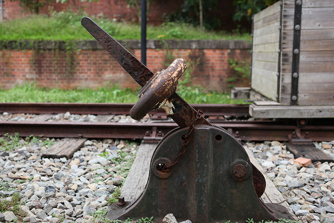 描述Description: 鐵道旁的機具,具有切換火車軌道之功能。
