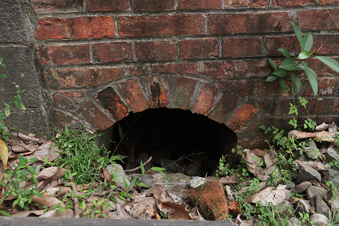 描述Description: 大約是作下水道或排水孔之用上方為拱形的洞。
